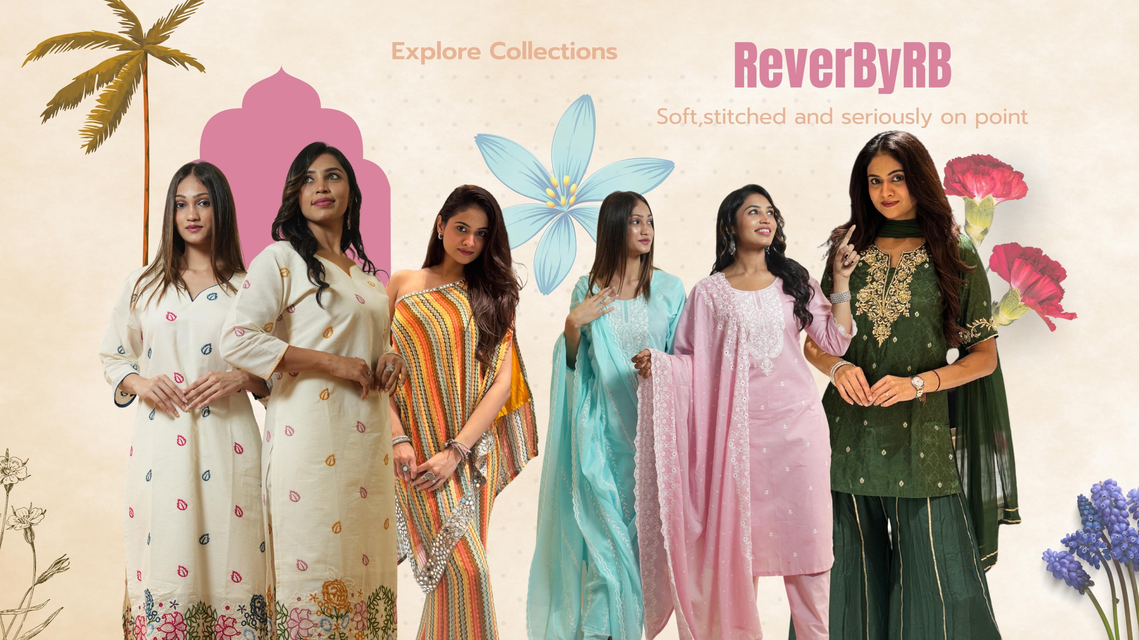"Beige Floral Printed Cotton Kurta Set with Striped Pants"